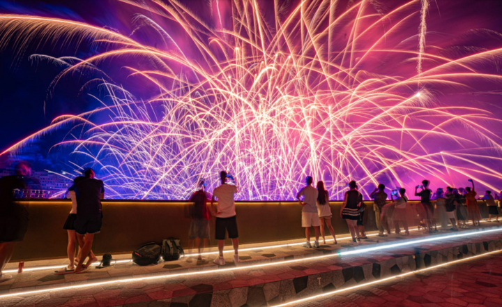선셋타운에서는 연말 카운트다운을 중심으로 불꽃놀이와 라이브 음악 공연이 진행된다. 이 지역은 유럽풍 건축과 바다를 배경으로 한 야경이 뛰어나 SNS 인증 명소로 자리 잡았으며, 2025년에는 야간 콘텐츠가 더욱 강화되어 저녁 시간대 방문이 필수 코스로 꼽힌다. 연말 당일에는 인파가 몰리지만, 그만큼 축제 분위기를 제대로 느낄 수 있다.